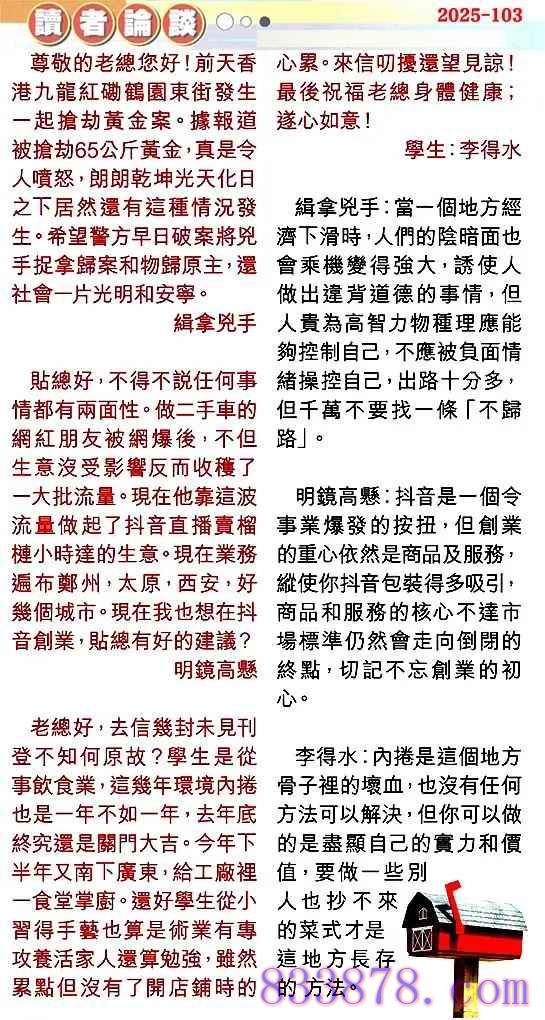 103期:彩民推荐贴信读者论坛