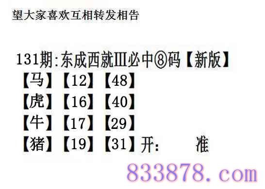 主题 : 131期:另版【东成西就四肖8码】