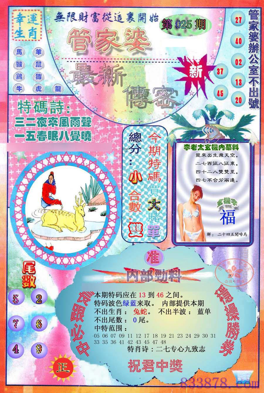 主题 : 025期:最新管家婆传密
