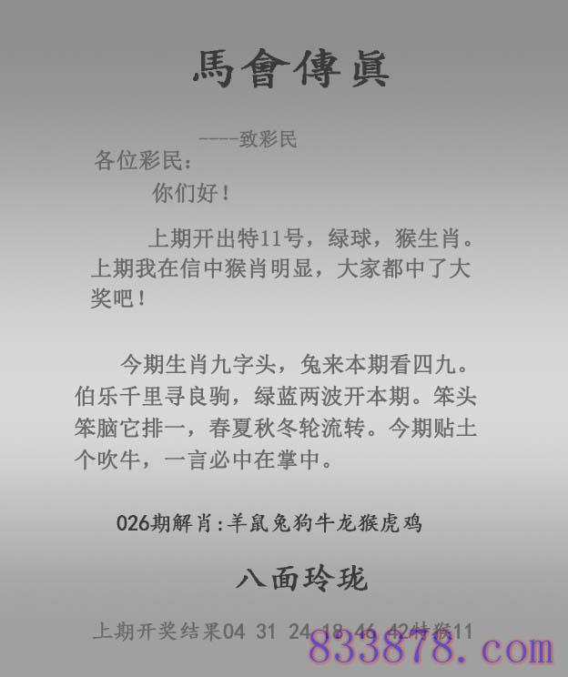 026期:正马会传真