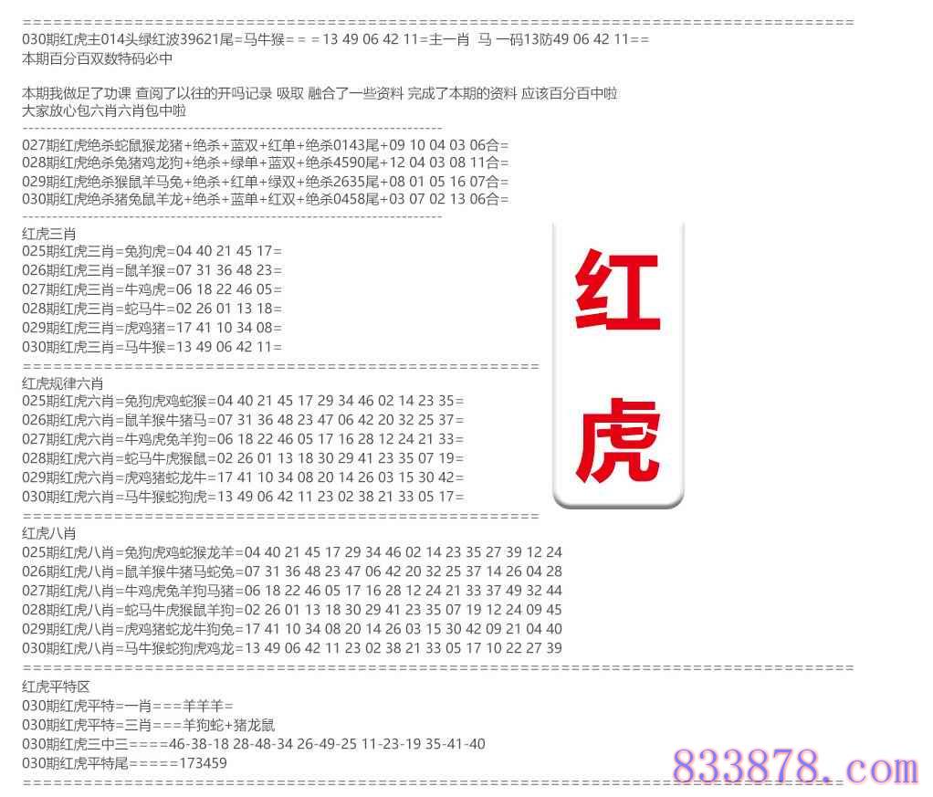 030期:红虎资料