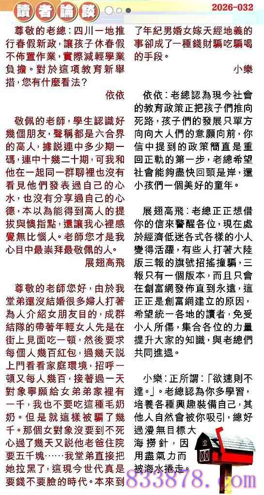 032期:彩民推荐贴信读者论坛