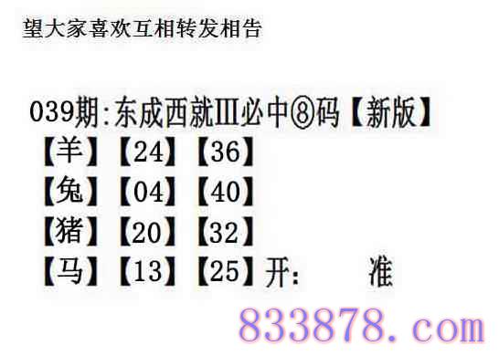 主题 : 039期:另版【东成西就四肖8码】