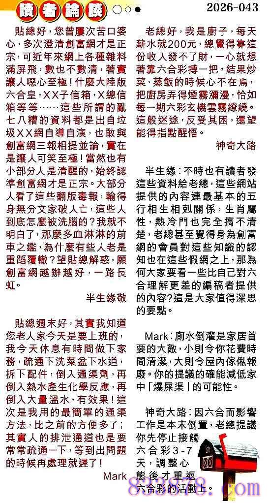 043期:彩民推荐贴信读者论坛