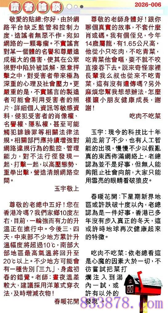 006期:彩民推荐贴信读者论坛