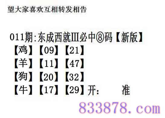 011期:另版【东成西就四肖8码】