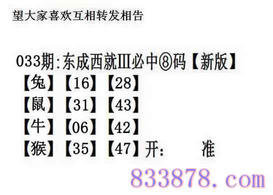 主题 : 033期:另版【东成西就四肖8码】